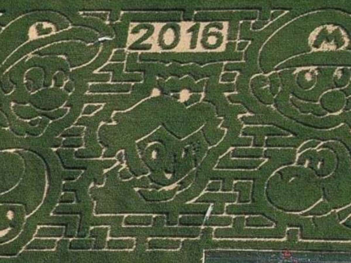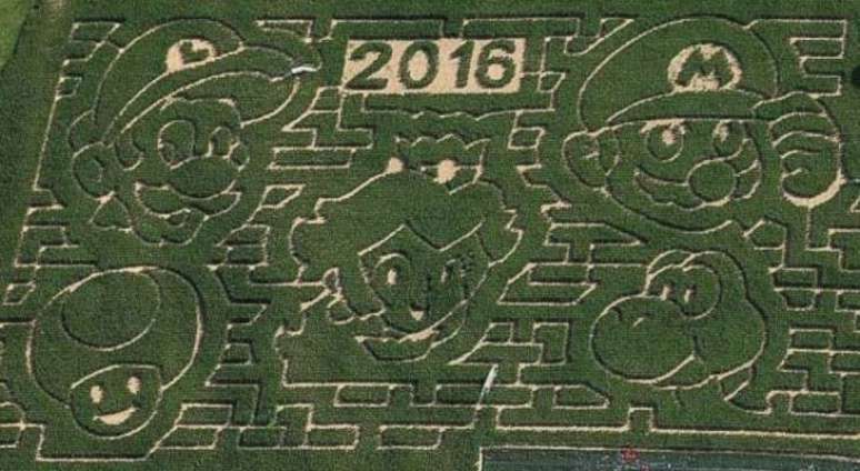 Fazenda Stoughton, no estado de Nova York, homenageou os 30 anos do jogo com desenhos dos personagens. Labirinto ganha novos formatos a cada ano