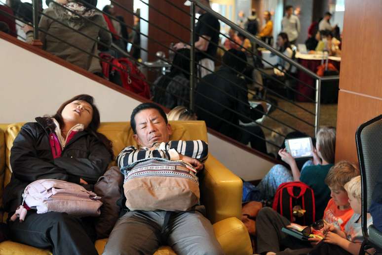 1° de novembro - Passageiros aguardam pela normalização dos voos no aeroporto de Los Angeles