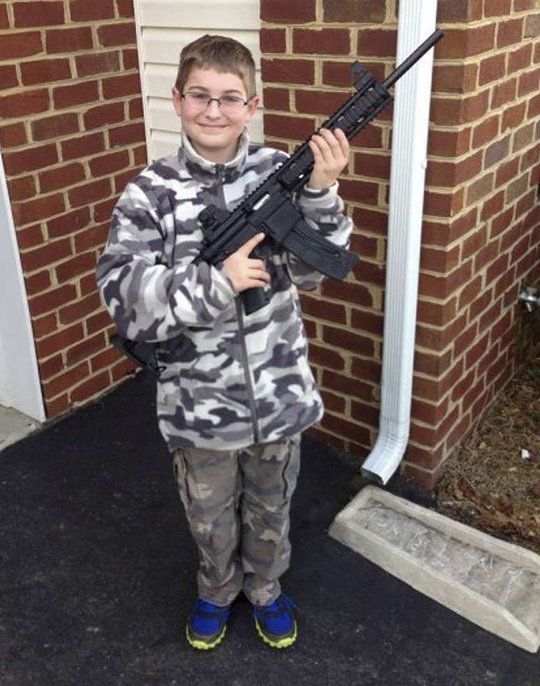 Foto de menino de 10 anos com réplica de rifle gera polêmica nos EUA