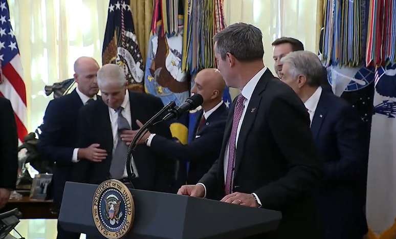 Trump discursava sobre o novo acordo que prevê a queda nos valores das chamadas "canetas emagrecedoras", quando notou o mal-estar do homem, que estava em pé ao seu lado. O republicano se levantou para observar a situação, enquanto assessores e outros participantes correram para prestar socorro.