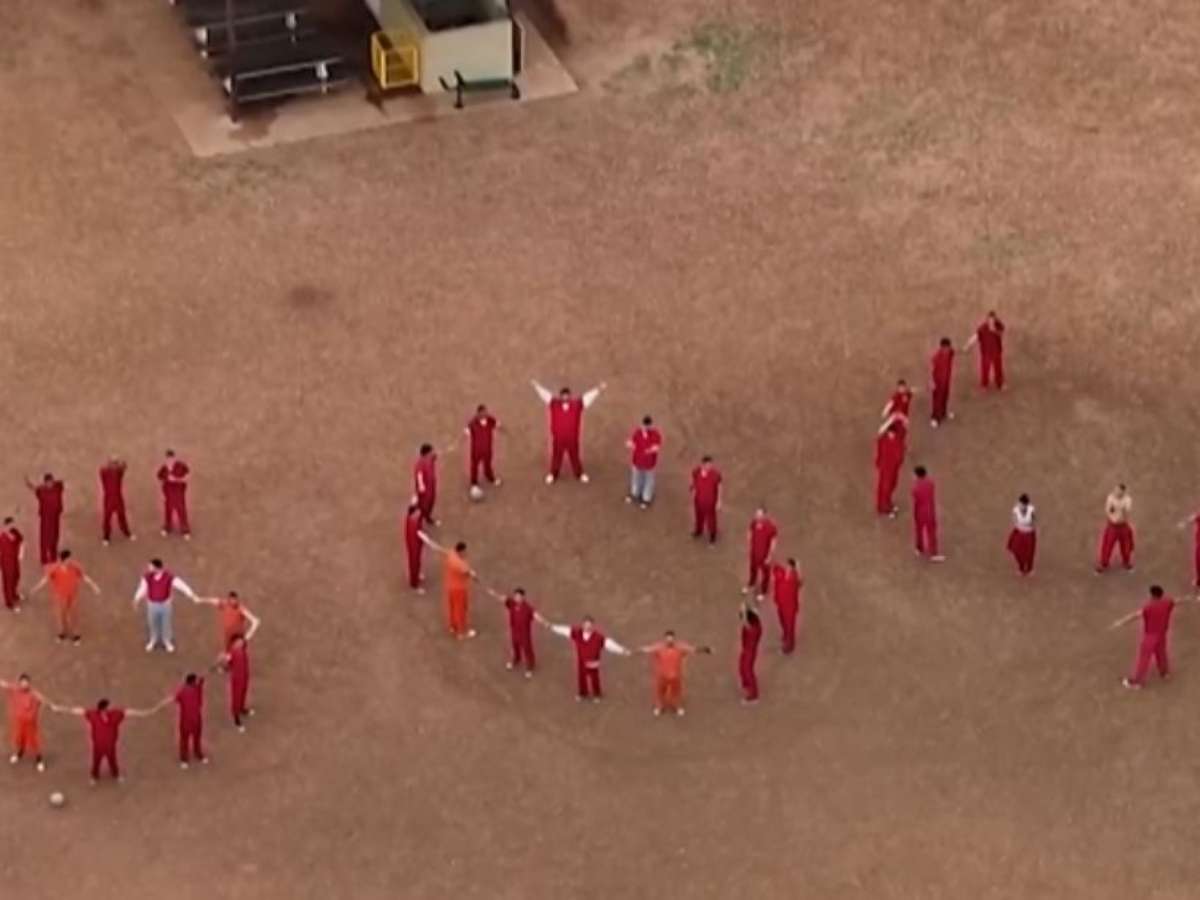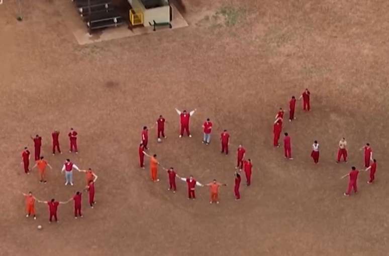 Imigrantes detidos no Texas formaram um 'SOS' humano pedindo ajuda para evitar deportação a uma prisão de segurança máxima em El Salvador.