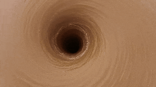 O fluxo de água cria uma força de sucção em forma de ciclone, como um tornado, com uma abertura maior no topo e redução gradual em um funil estreito.