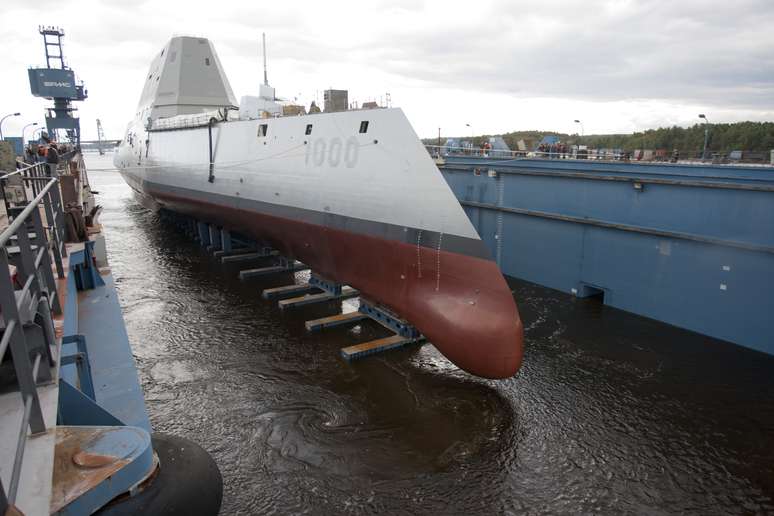 O navio foi lançado pela Marinha americana nesta semana em um estaleiro no Estado de Maine. O USS Zumwalt está em sua fase final de construção