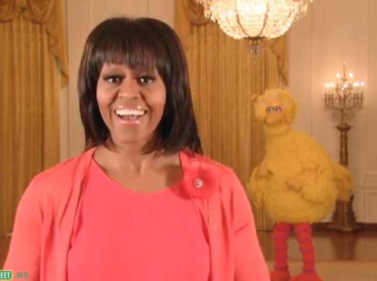 O personagem amarelo conhecido por gerações de crianças americanas é visto praticando corrida corrida no Salão Leste da Casa Branca e conferindo uma tigela de frutas e legumes na cozinha presidencial em dois novos anúncios do governo.