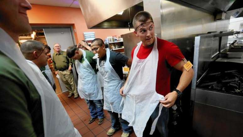 Militares servem refeições a ex-veteranos de guerra nos EUA