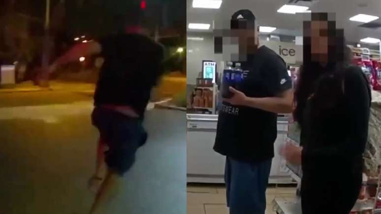 De acordo com as autoridades, o caso ocorreu na Avenida Montezuma. Uma testemunha acionou a polícia ao perceber que a mulher precisava de ajuda. As imagens corporais dos agentes registraram o momento em que o casal é abordado dentro do estabelecimento.