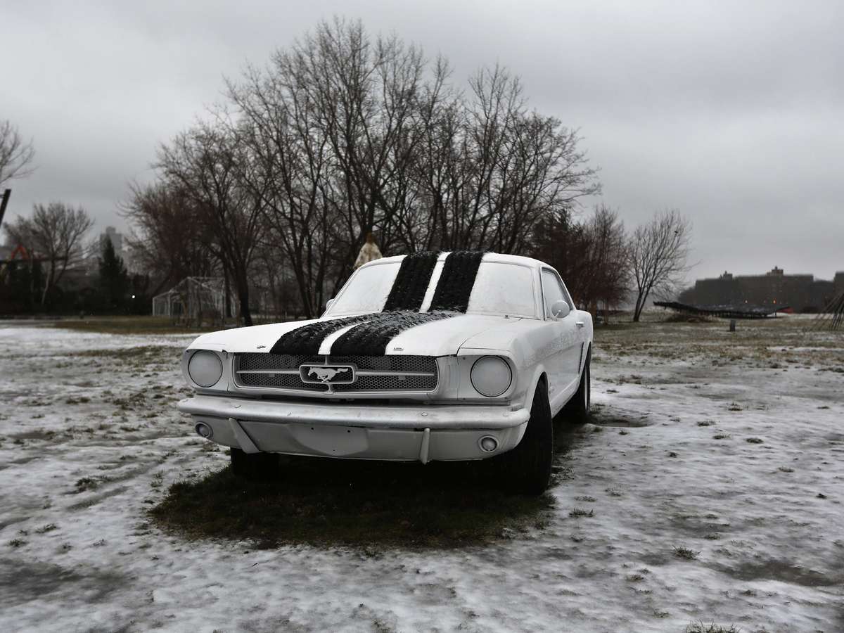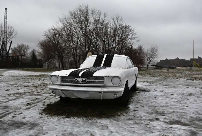 Automóvel clássico é coberto pela neve em parquet no Queens, em Nova York