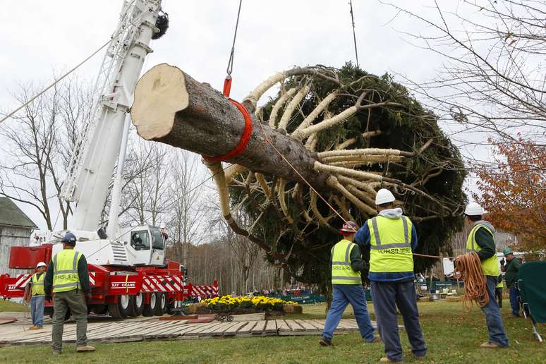 A conífera abeto vermelho da Noruega de quase 26 metros, doada por um casal da Pensilvânia, será iluminada com 45 mil luzes de LED em 3 de dezembro