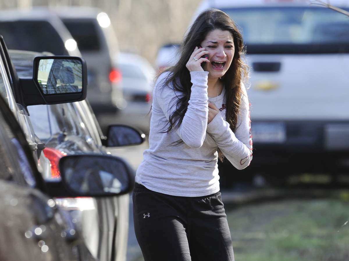 Familiares choram após o tiroteio na escola Sandy Hook, em Newtown