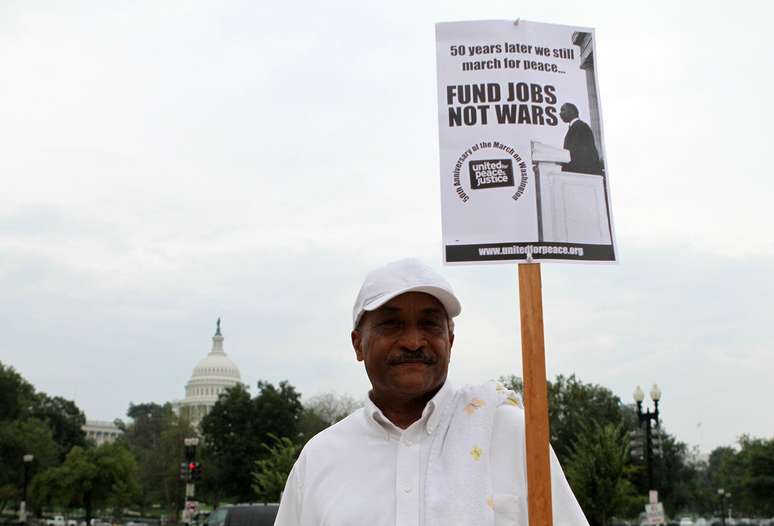 Melbin Graham, 62 anos, aposentado: "Eu nasci e cresci em Washington D.C. e achei que era importante estar aqui nesta data. Meu sonho para o futuro é o que diz neste cartaz. Nós precisamos de mais empregos para concertar os Estados Unidos"