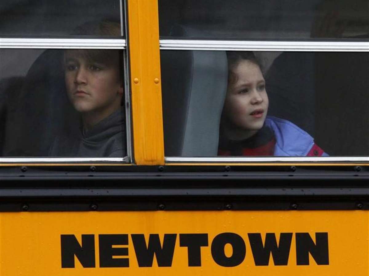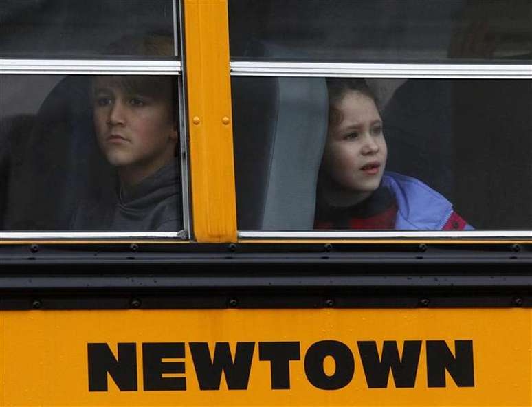 Crianças se assustam com o tiroteio na escola primária Sandy Hook, em Newtown, no Estado de Connecticut