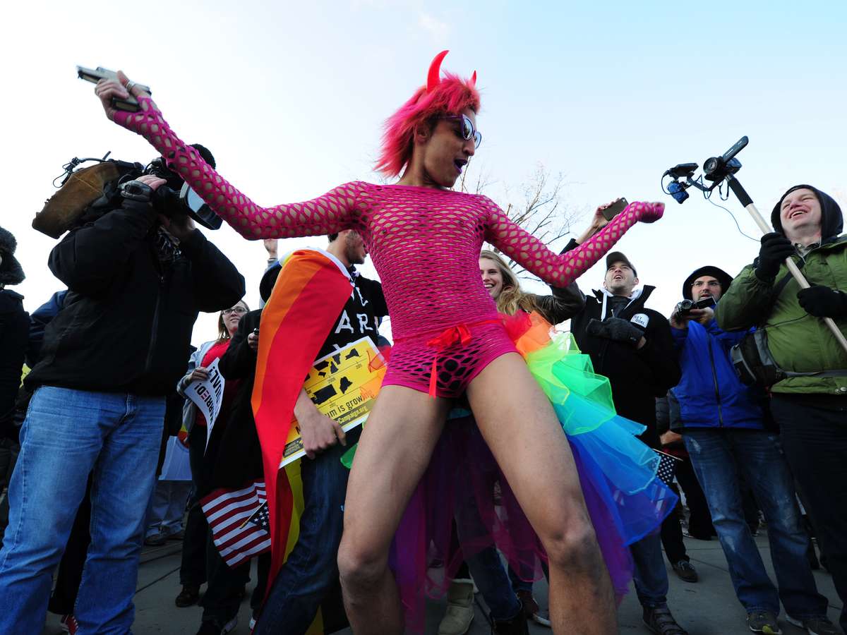 Manifestantes protestam contra o casamento gay em frente à Suprema Corte