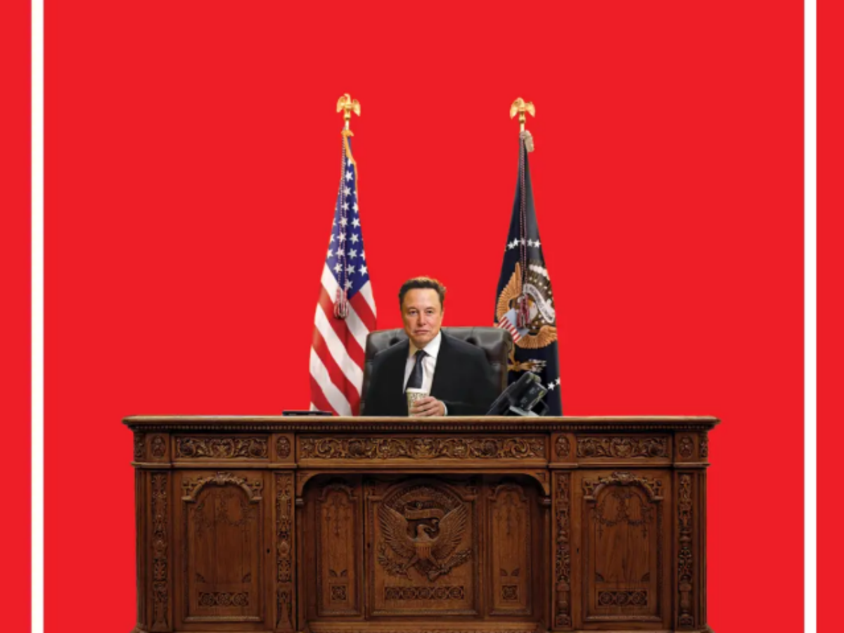 A revista norte-americana Time destacou nesta sexta-feira, 7, em sua capa uma imagem em que o bilionário Elon Musk aparece sentado na mesa presidencial do salão oval da Casa Branca.