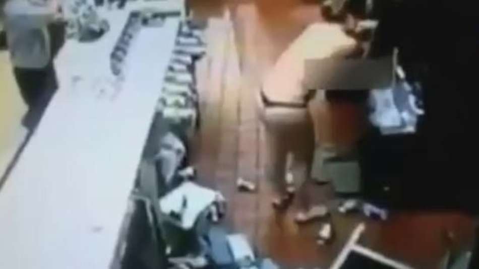 Mulher de fio dental e top less quebra lanchonete nos EUA