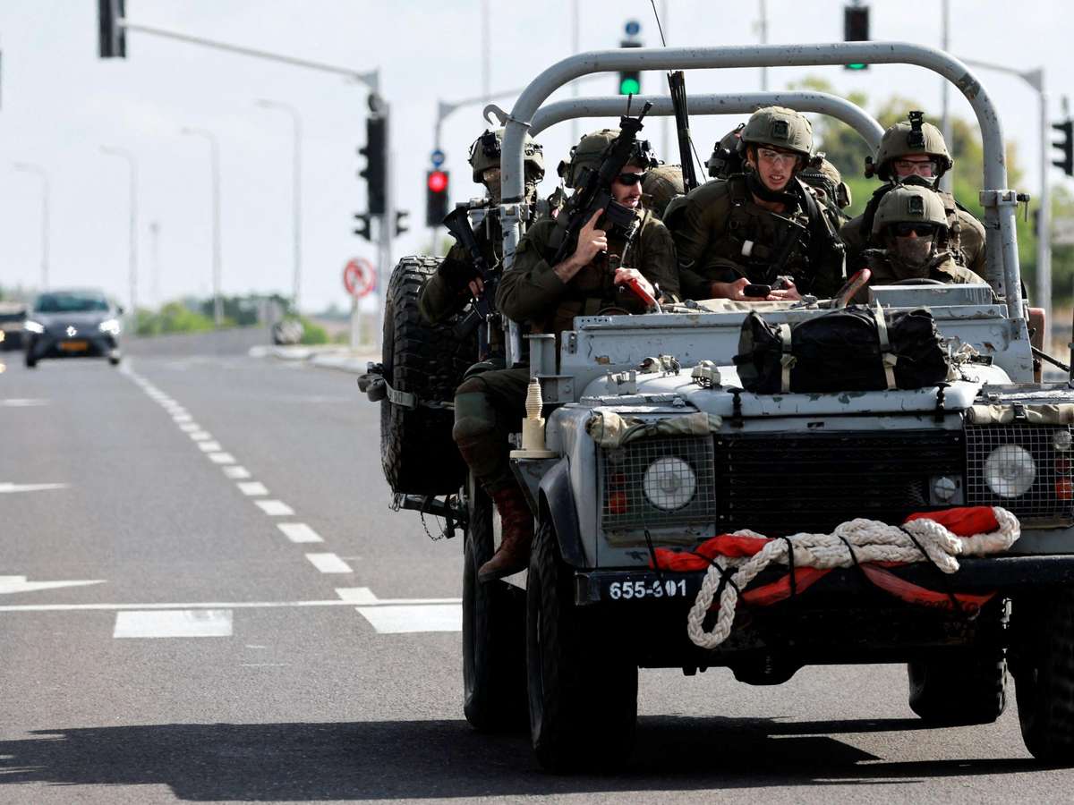 Imagens postadas na internet parecem mostrar um grupo de militantes palestinos fortemente armados, vestidos com uniformes pretos, dirigindo uma caminhonete pela cidade de Sderot.