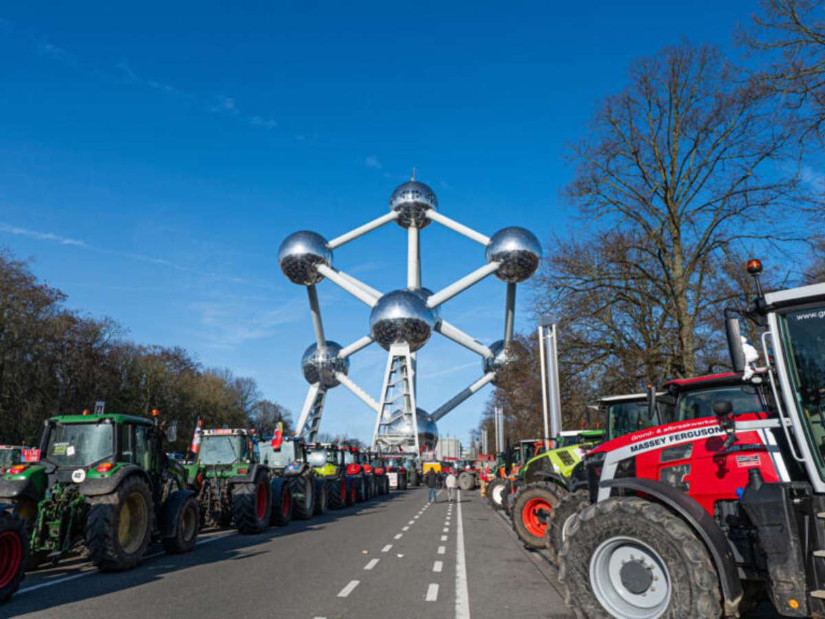 Centenas de agricultores cercaram neste domingo (18) as ruas em torno do Atomium, um dos monumentos mais famosos de Bruxelas. Dirigindo tratores, eles protestaram contra a aprovação do acordo entre a União Europeia e o Mercosul, ocorrida na véspera, em Assunção.