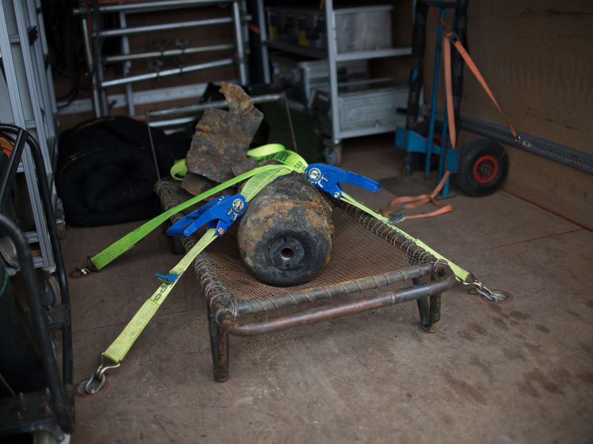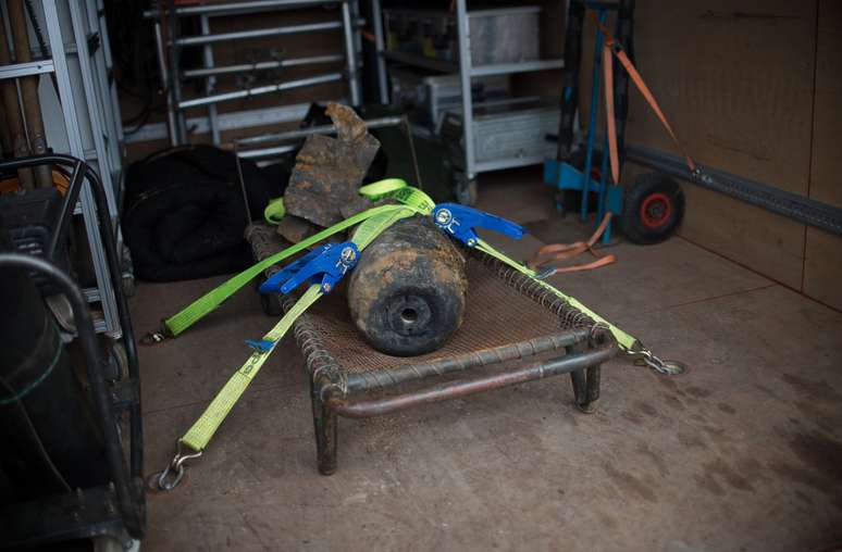 Bomba da Segunda Guerra Mundial é fotografada após ser desativada, em Berlim. O explosivo de 100 kg foi encontrado próximo à principal estação ferroviária da cidade, provocando a paralização do sistema de transportes e a evacuação de moradores de áreas próximas. A bomba foi encontrada durante uma operação de rotina na terça-feira