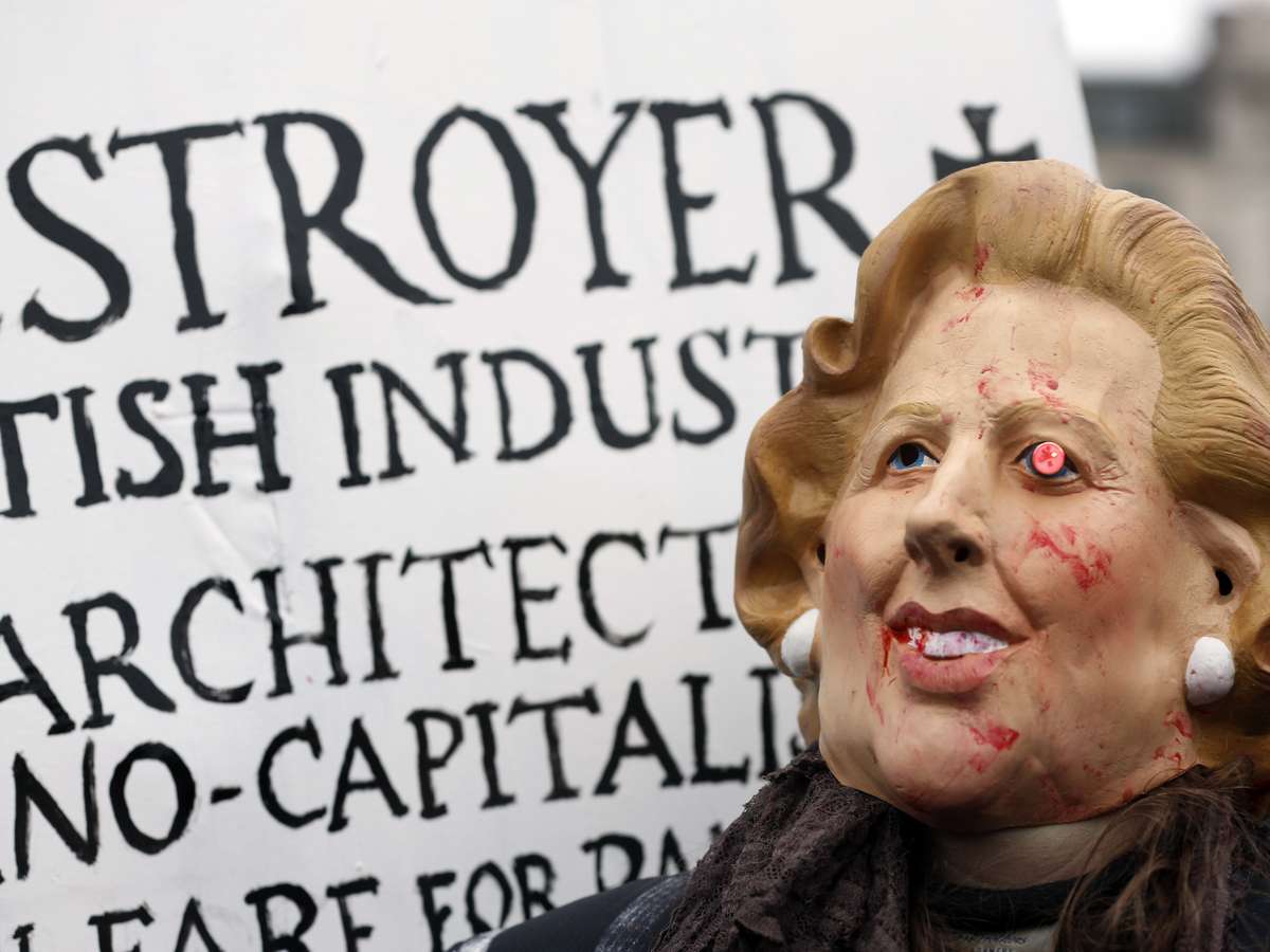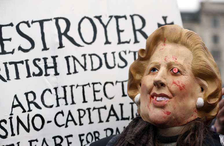 Os manifestantes marcaram posição contra as políticas liberais de Thatcher, que foi chefe de governo do Reino Unido de 1979 a 1990.