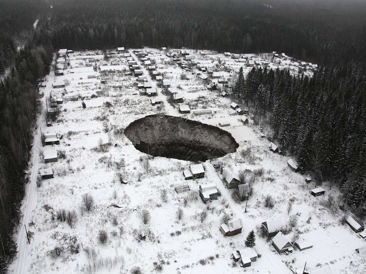 Um buraco de 50 metros de diâmetro engoliu várias casas de um pequeno povoado perto da cidade russa de Solikamsk, em Urais, segundo vários testemunhos de moradores dessa região mineira.