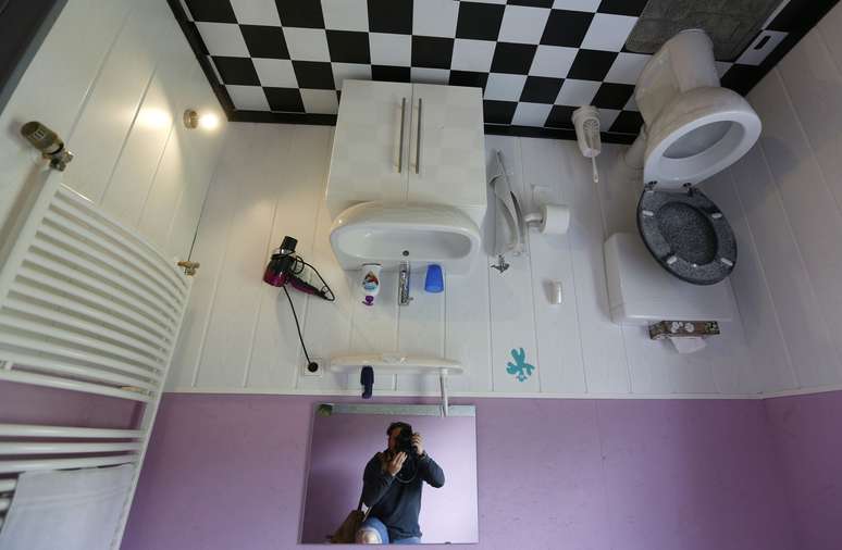 Absolutamente todos os cômodos foram construídos de ponta cabeça, até o banheiro