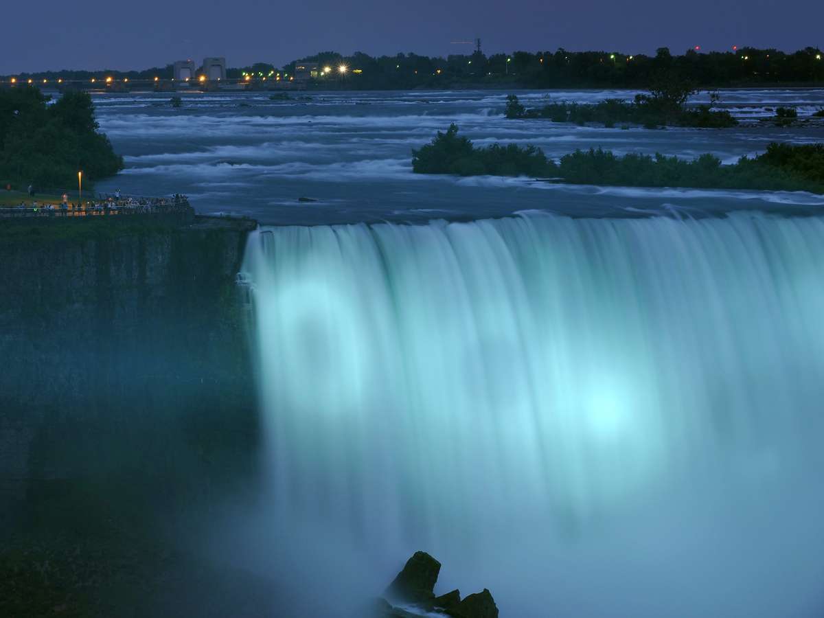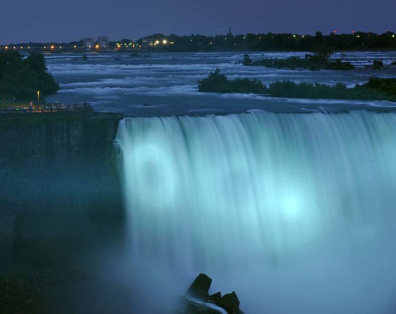 Como símbolo do compromisso do Canadá com a coroa britânica, as cataratas do Niágara foram iluminadas de azul nesta segunda-feira em homenagem ao filho da duquesa de Cambridge, princesa Kate