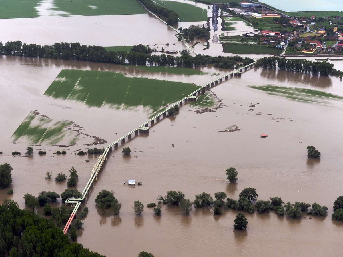 11 de junho - Região alagada pela alta do Elba; as fortes chuvas também aumentaram a perigosos níveis os rios Danúbio, Vltava e Saale; os países mais afetados são Alemanha, República Checa, Áustra, Eslováquia e Hungria, todos na região central europeia