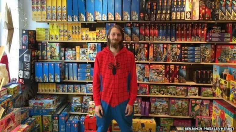 Benjamin Preisler Herbst é dono de uma loja de brinquedos em Copenhagen e diz que sua vida gira em torno dos personagens de quadrinhos.
