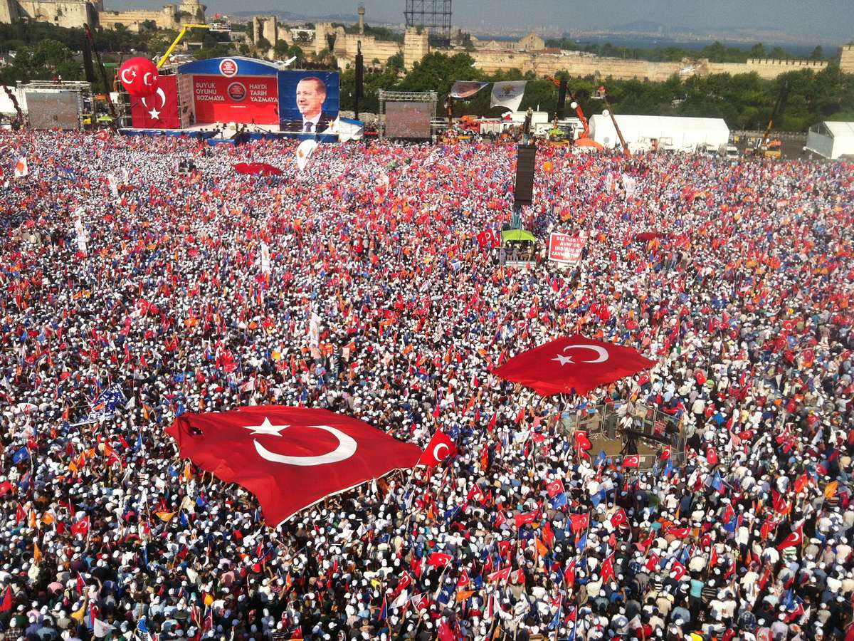 Dezenas de milhares de simpatizantes de seu Partido da Justiça e do Desenvolvimento (AKP, oriundo do movimento islamita) participaram do ato.