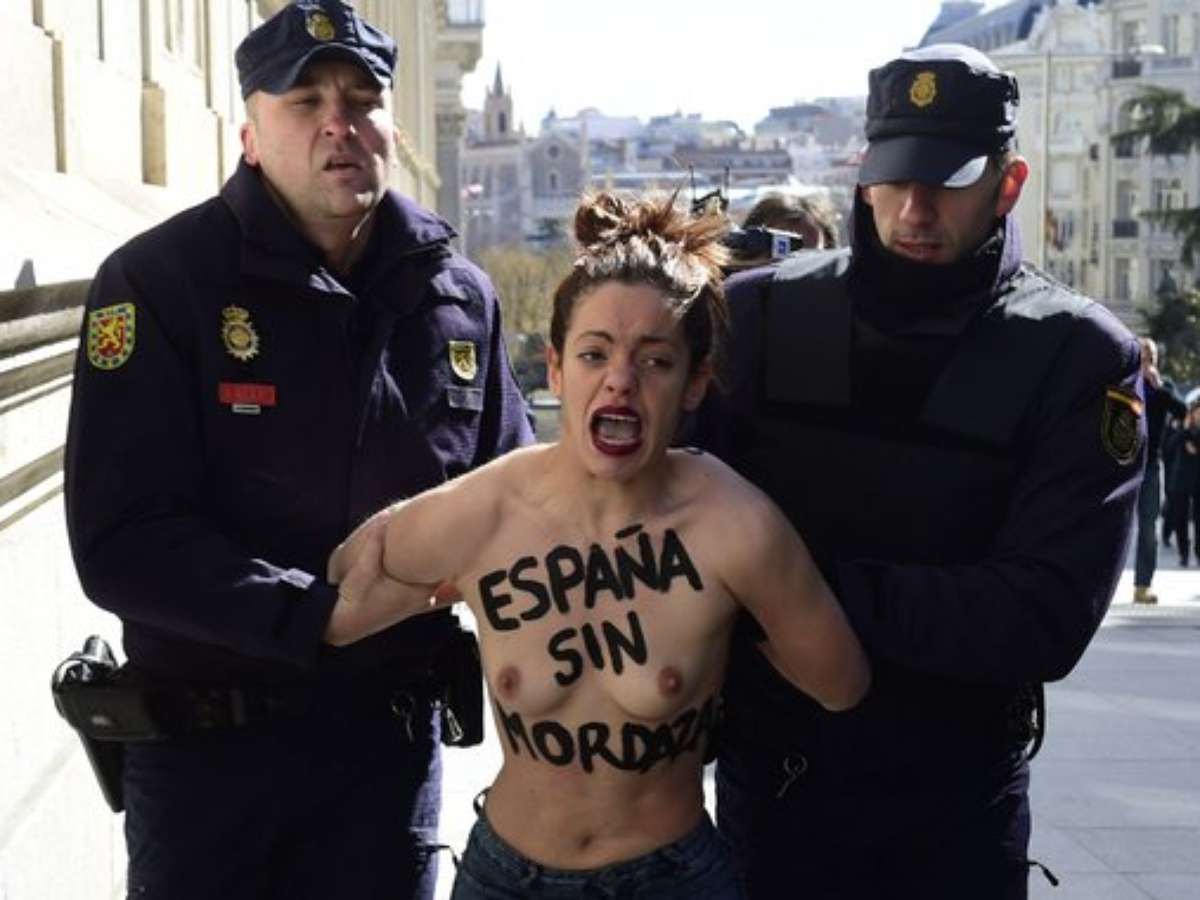 Duas ativistas do movimento feminista Femen fizeram um protesto em frente ao Congresso espanhol, nesta terça-feira (24). A manifestação foi um protesto contra a nova lei de segurança pública do Estado. As informações são do The Huffington Post.
