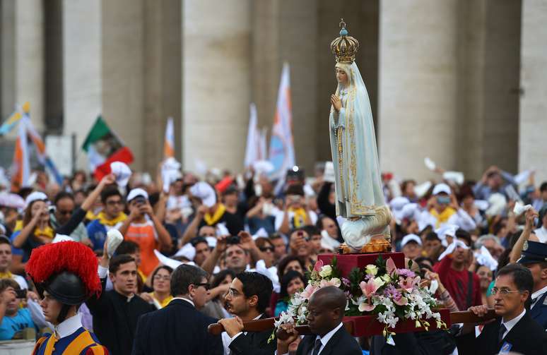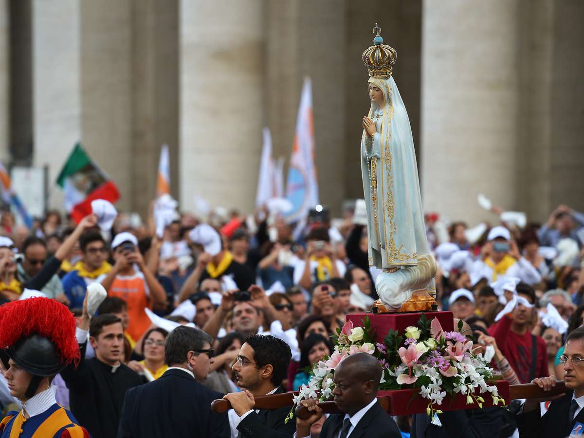 A Virgem de Fátima foi apresentada neste sábado a dezenas de milhares de peregrinos reunidos na Praça de São Pedro, durante uma grande peregrinação e na presença do Papa, que colocou seu pontificado sob a proteção da Virgem.