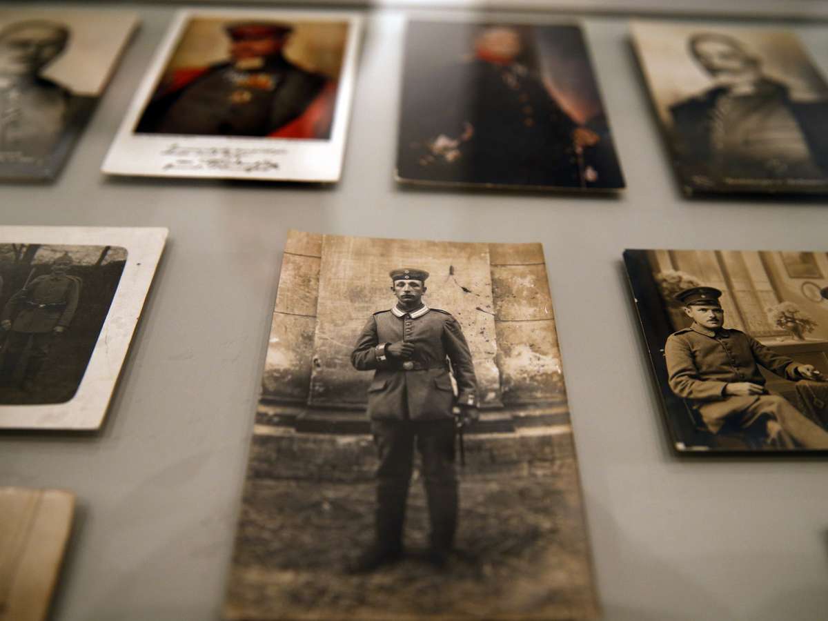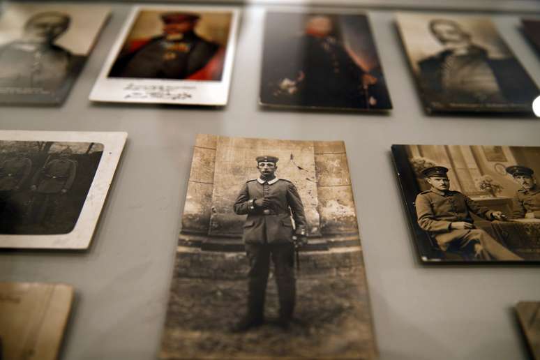 Fotos da 1ª Guerra Mundial são vistas na exposição intitulada "A Grande Guerra em Retratos", na National Portrait Gallery, em Londres, em 26 de fevereiro. A exposição dá início às comemorações do centenário da Primeira Grande Guerra, em Londres.