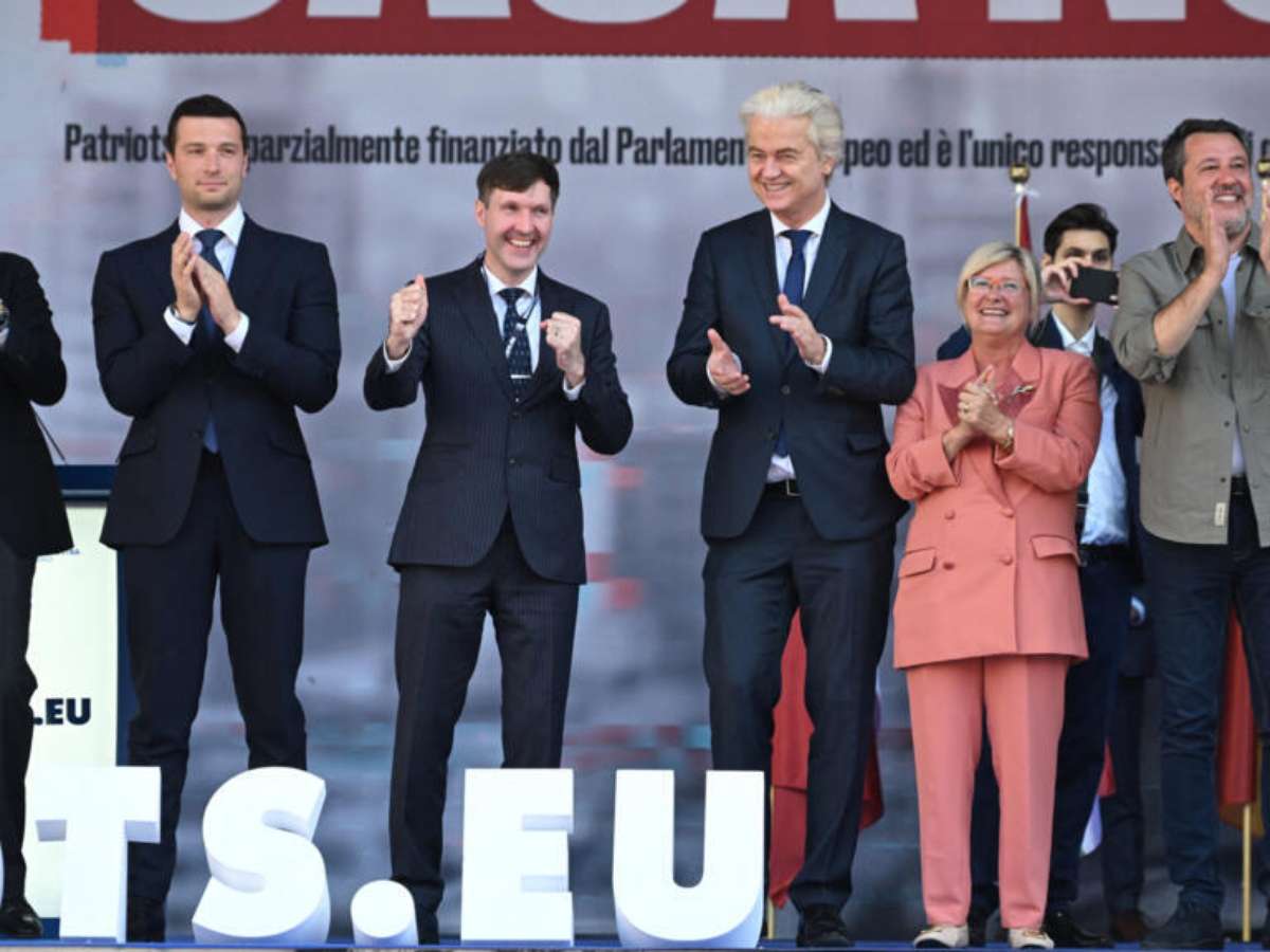 "Hoje, a tragédia que prevíamos tornou‑se realidade: nosso povo, os habitantes originários da Europa, foi atingido por uma onda de imigração em massa, imigração ilegal, principalmente vinda de países islâmicos", declarou Geert Wilders, líder do partido de extrema direita holandês, diante de uma multidão de bandeiras italianas e cruzes de São Jorge.