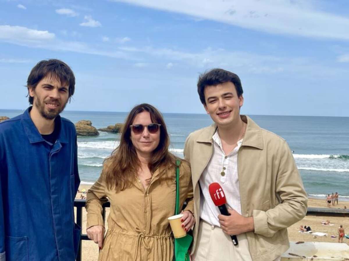 Os diretores Pedro Waddington (e). Rebeca Diniz e o ator Thiago Voltolini apresentam o filme "Precisamos Falar" no festival de Cinema Latino-Americano de Biarritz. Em Biarritz, em 20 de setembro de 2025.
