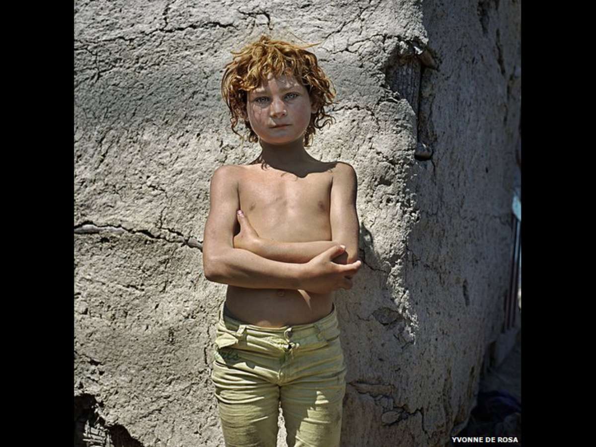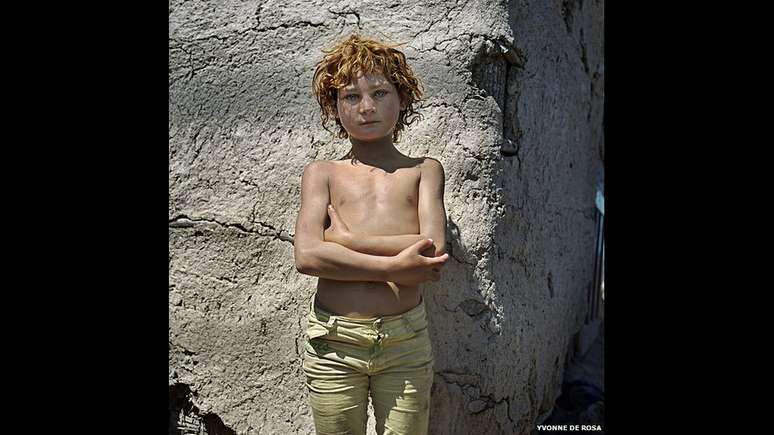 "Apesar de podermos dizer que a pobreza também significa privar alguém de sua identidade, não vi isto. Cada vez que apontava minha velha Rolleiflex para as pessoas, elas me mostravam muita coragem e força de caráter", disse Yvonne. Acima, pai e filho em Ferneziu