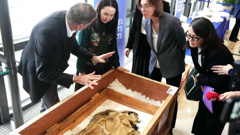 "Estou realmente orgulhosa e agradecida a todas as pessoas que contribuíram para combater esse tráfico ilegal. É muito importante ver retornarem ao nosso país esses fósseis de dinossauros, é nosso patrimônio cultural", destacou à AFP Undram Chinbat, ministra da Cultura, dos Esportes, do Turismo e da Juventude da Mongólia, que veio recuperar o material.