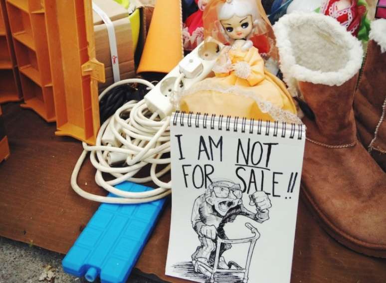 Quando sai pelas ruas, ele sempre carrega lápis e vários blocos de desenhos de diferentes tamanhos.