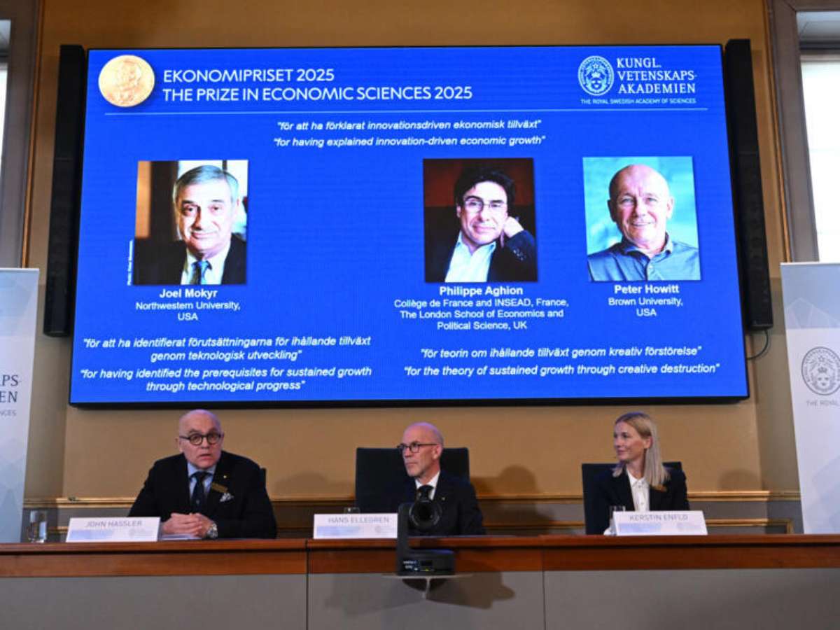 O Prêmio do Banco Central da Suécia em Ciências Econômicas — conhecido como "Prêmio Nobel" de Economia — foi concedido nesta segunda-feira (13) ao francês Philippe Aghion, ao americano-israelense Joel Mokyr e ao canadense Peter Howitt, por seus estudos sobre o impacto das novas tecnologias no crescimento econômico.