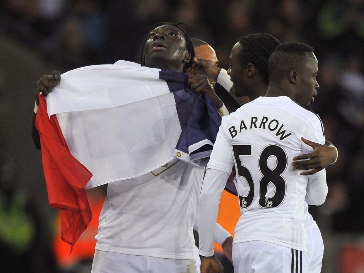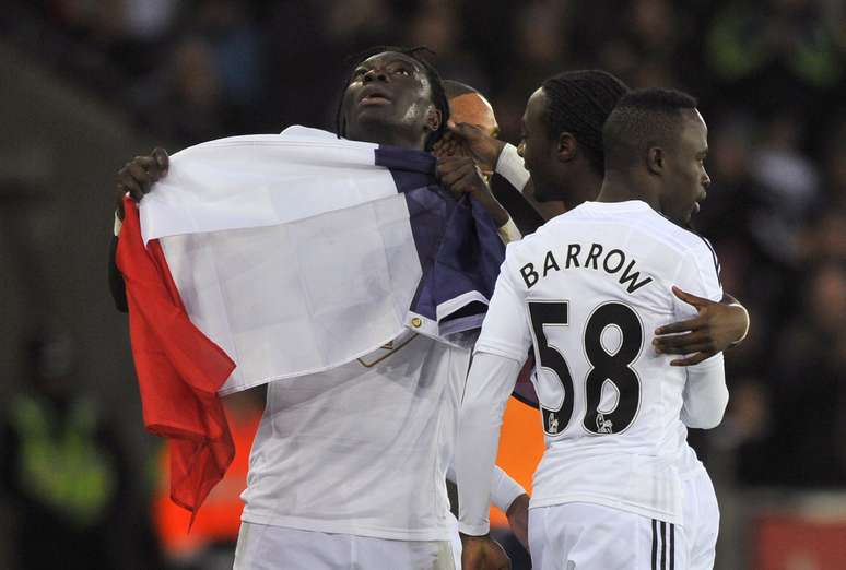 O atacante francês Bafetimbi Gomis levou às homenagens ao atentados jihadistas que abalaram seu país à terra da Rainha, ao agitar uma bandeira da França na hora de celebrar um gol que marcou para o Swansea, neste sábado, pela 21ª rodada do Campeonato Inglês.