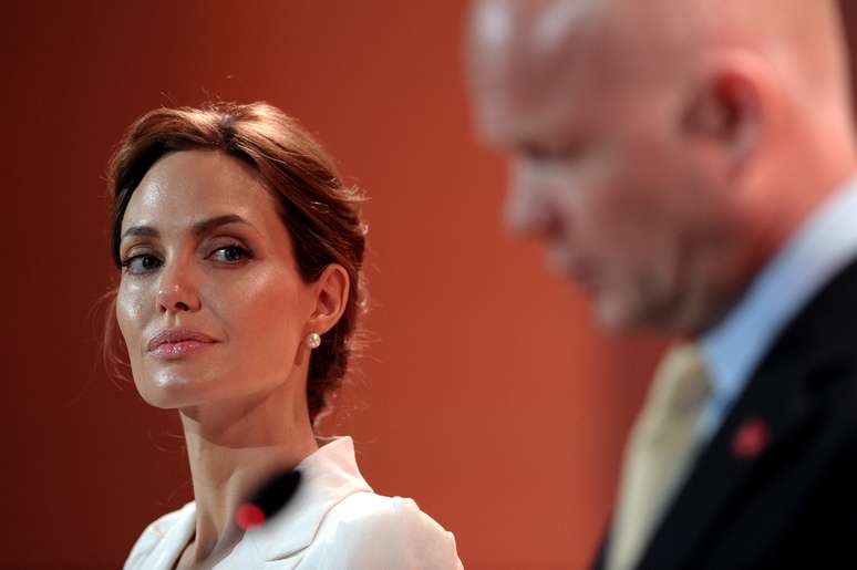 A atriz Angelina Jolie e o secretário britânico de Relações Exteriores, William Hague, participam da Cúpula Global para Acabar com a Violência Sexual em Conflitos, em Londres, em 10 de junho