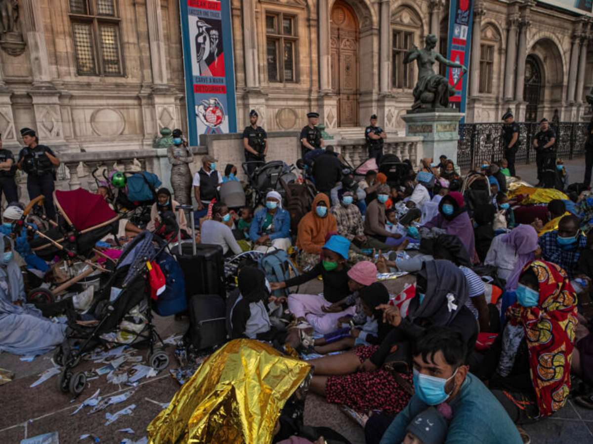 Migrantes sem-teto são removidos da entrada da Prefeitura de Paris e pressionados a deixar a cidade