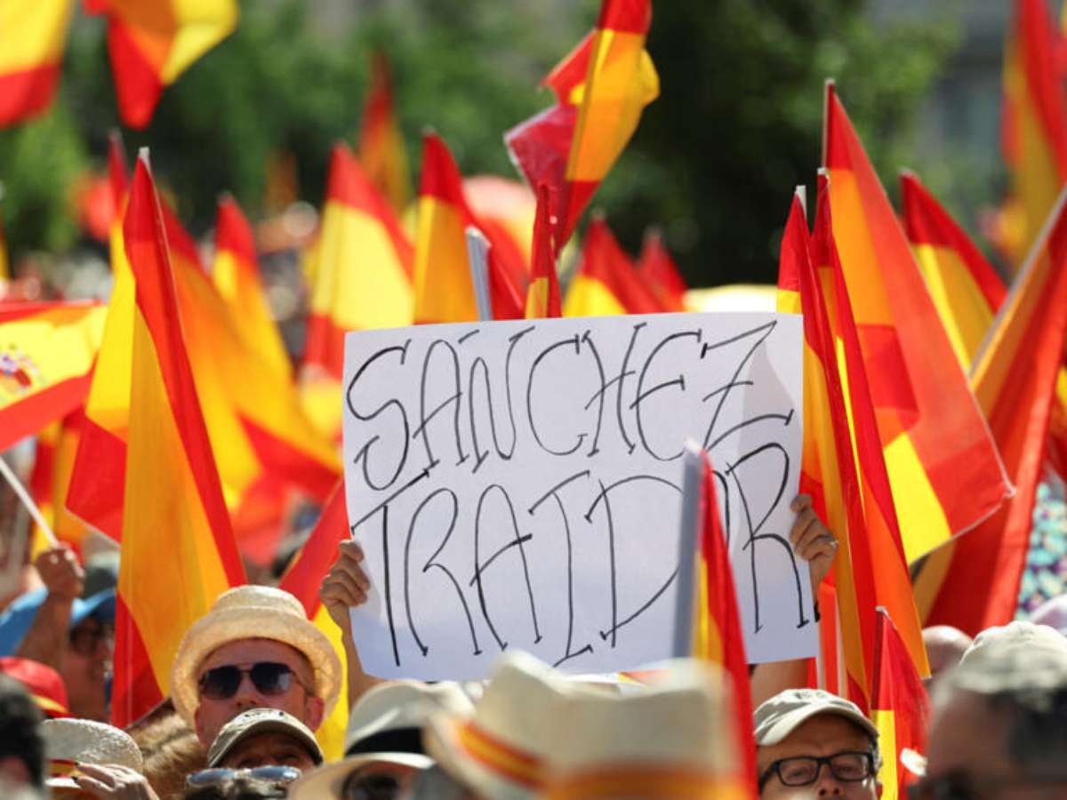 Quase 100 mil pessoas, segundo os organizadores, e cerca de 50 mil, segundo a polícia, se reuniram no centro de Madri neste domingo (8), para protestar contra o governo do primeiro-ministro socialista Pedro Sánchez e exigir sua renúncia. O Partido Popular, partido conservador de oposição que convocou a grande manifestação, mantém tensões com o governo, manchado por vários escândalos de corrupção, enquanto os socialistas esperam concluir seu mandato em agosto de 2027.