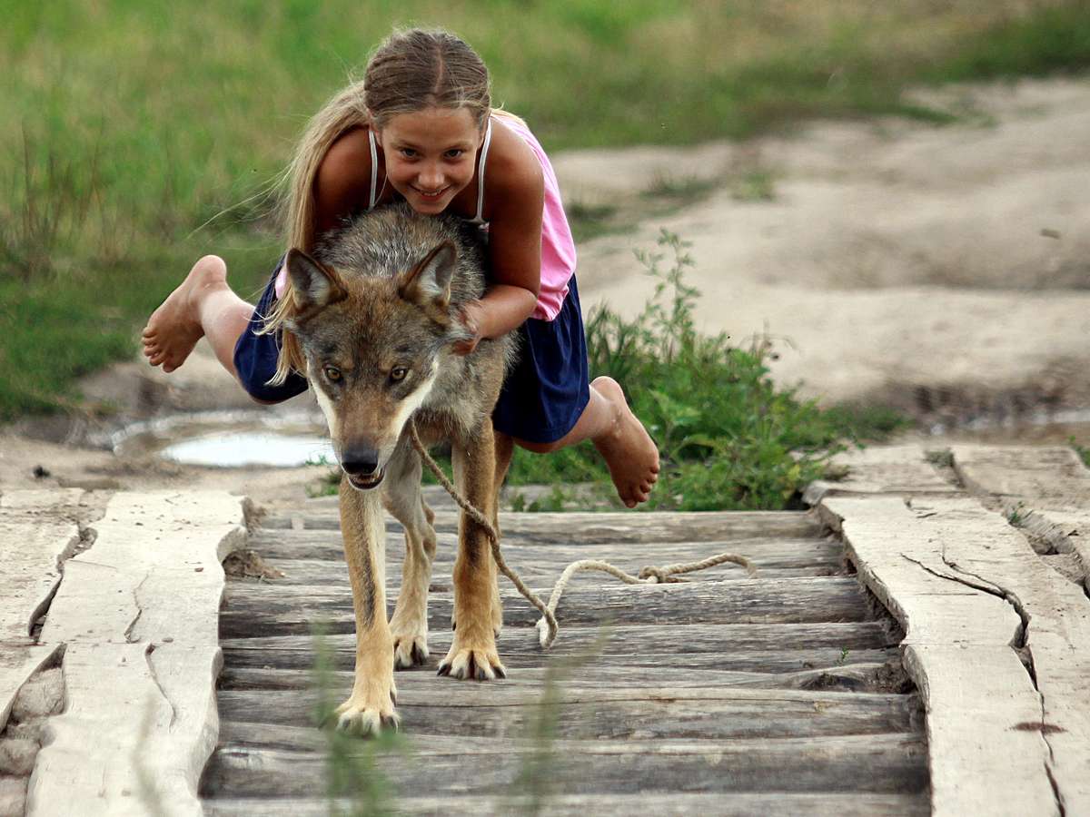 Quando a pequena Alisa Selekh, 10 anos, quer se divertir, ela pula nas costas de um de seus lobos de estimação e o cavalga pelo quintal de sua casa, na vila Zacherevye, Rússia. O pai de Selekh, que é guarda-florestal, adotou um grupo de lobos ainda bebês, que se tornaram inseparáveis da família. As informações são do site Daily Mail.