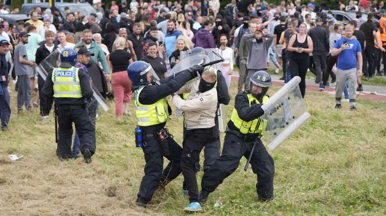 Mas não foi exatamente isso que aconteceu. Houve manifestações tensas nas últimas semanas em frente a vários hotéis que abrigam imigrantes, inclusive no distrito financeiro de Canary Wharf, em Londres, onde a polícia prendeu seis pessoas no último domingo.