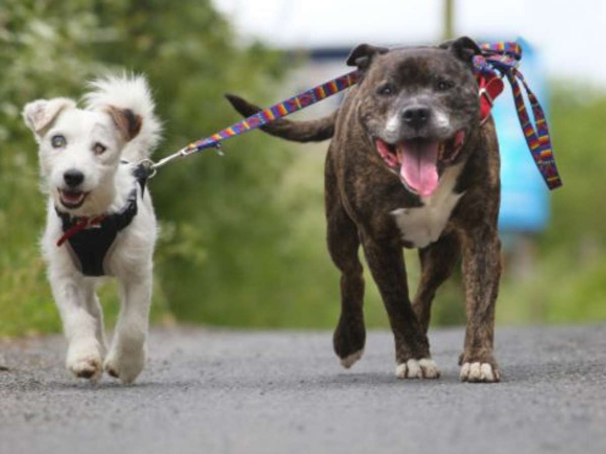 Sue deixou claro que os cães só serão adotados se a pessoa estiver disposta a ficar com ambos.