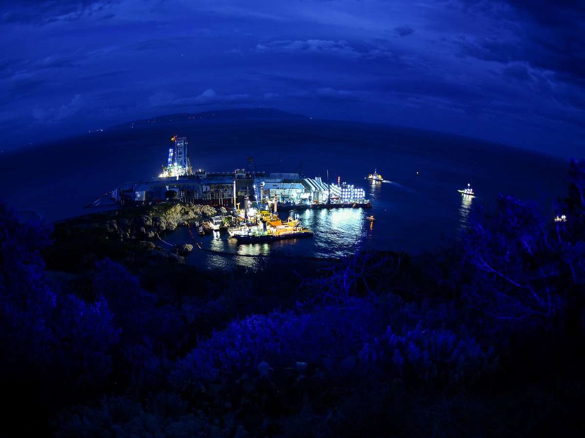 Apesar dos moradores da ilha de Giglio terem se acostumado com a presença do cruzeiro de 44,6 mil toneladas, 290 metros de comprimento e cerca de 70 metros de altura tombado em frente a uma de suas praias, eles não veem a hora deste símbolo da tragédia ser retirado do local.