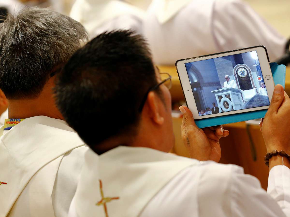 O papa Francisco repreendeu nesta quarta-feira padres e bispos que tiram fotos com seus celulares durante missas, dizendo que, ao invés disso, deveriam se concentrar em Deus.