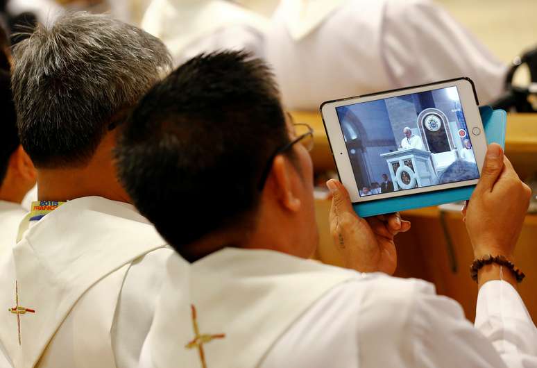 "O padre diz 'elevem seus corações'. Ele não diz 'elevem seus celulares para tirar fotos'", disse Francisco a dezenas de milhares de pessoas em sua audiência semanal na Praça de São Pedro, referindo-se a uma prece de comunhão da missa da Igreja Católica.