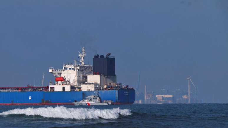 Interceptado na quinta-feira (22) pela França e por países aliados, o navio petroleiro Grinch está agora retido no golfo de Fos, próximo a Marselha, sul da França, para onde foi escoltado na noite de sábado para este domingo (25). O capitão, um indiano de 58 anos, foi detido como parte da investigação por ausência de bandeira, enquanto a tripulação — também de nacionalidade indiana — permanece a bordo.