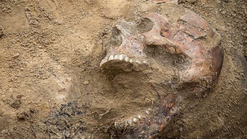 Restos humanos são vistos durante exumação de cova comum de cemitério militar do período stalinista em Varsóvia, na Polônia. Acredita-se que o local abrigue ossadas de mais de 200 vítimas da repressão soviética no período posterior à Segunda Guerra Mundial. O objetivo da iniciativa é identificar os mortos