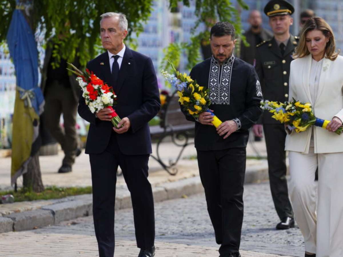 A questão da "presença, como se costuma dizer, das tropas no terreno, é importante para nós", afirmou Zelensky, ao lado do primeiro-ministro canadense Mark Carney, que visita Kiev no feriado da independência.